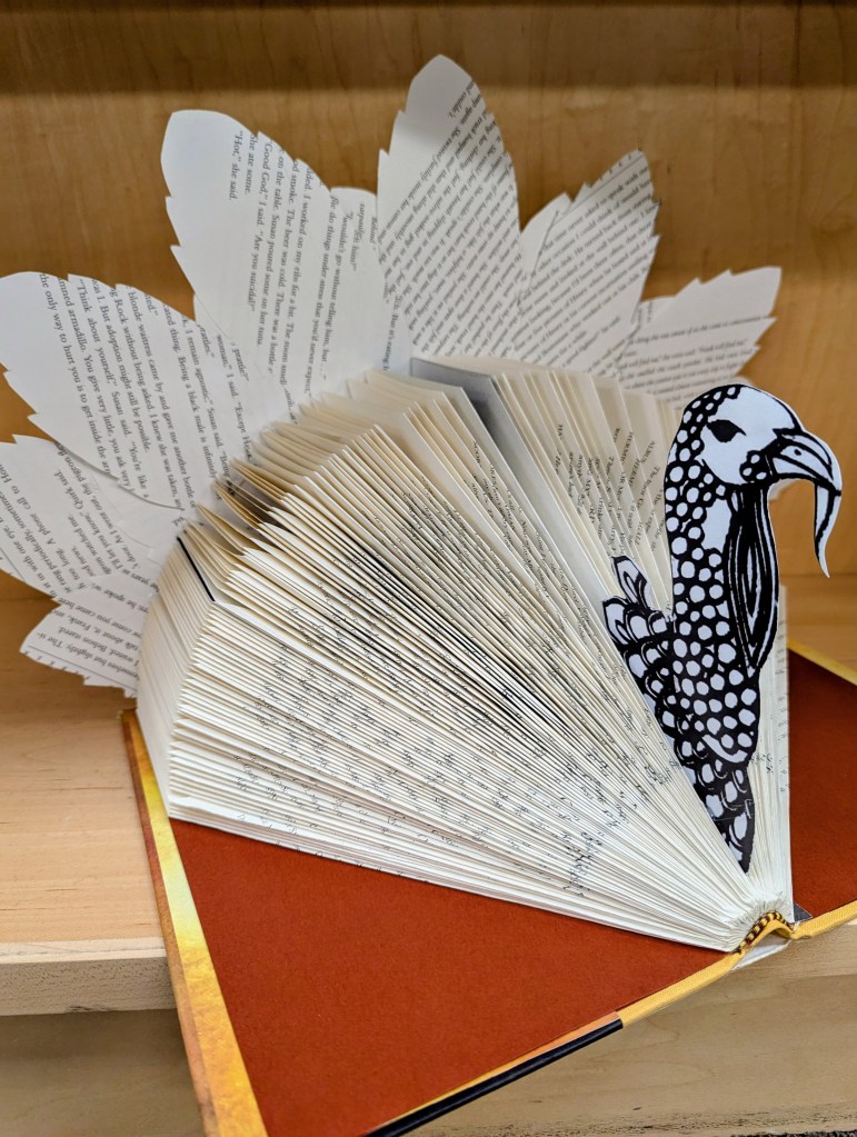 Transform an old book into a Thanksgiving decoration or centerpiece by folding pages of a book and a bit of glue!